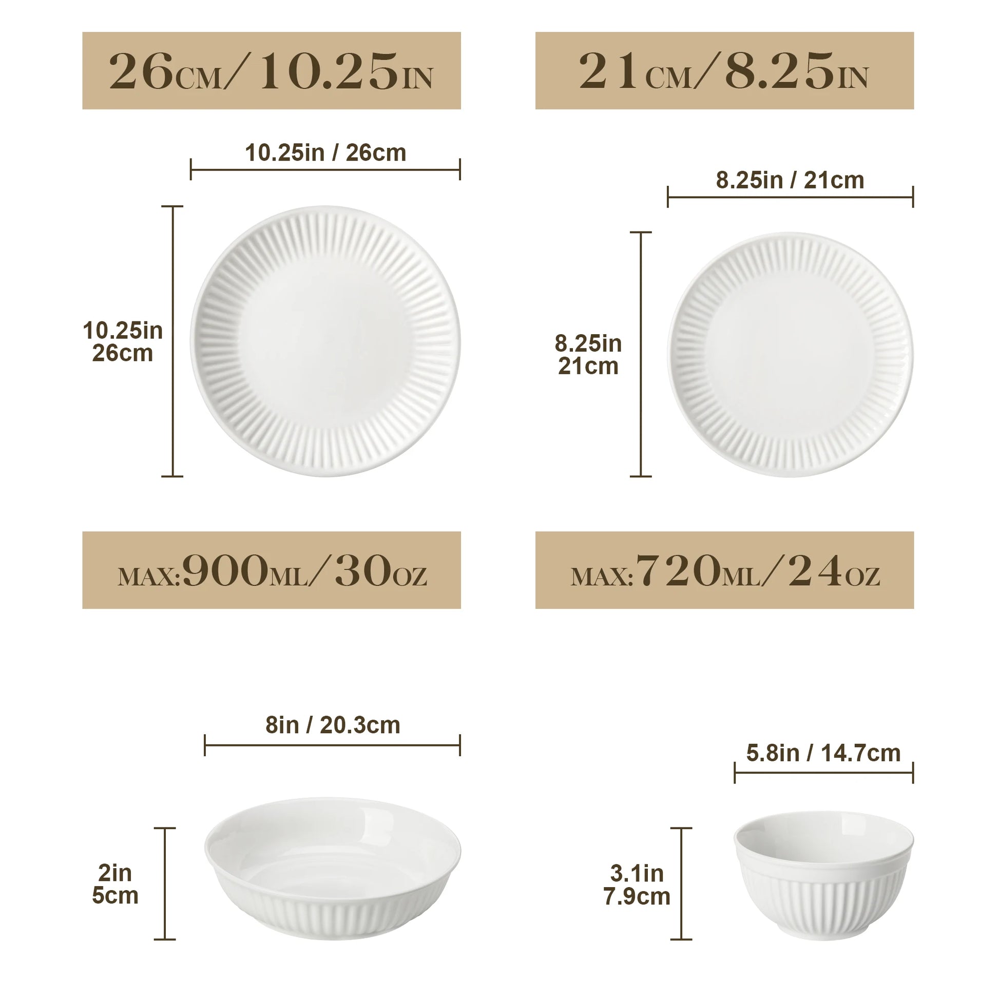 The MALACASA Leila Ceramic Dinnerware Set delivers timeless round silhouettes and everyday practicality for your table.